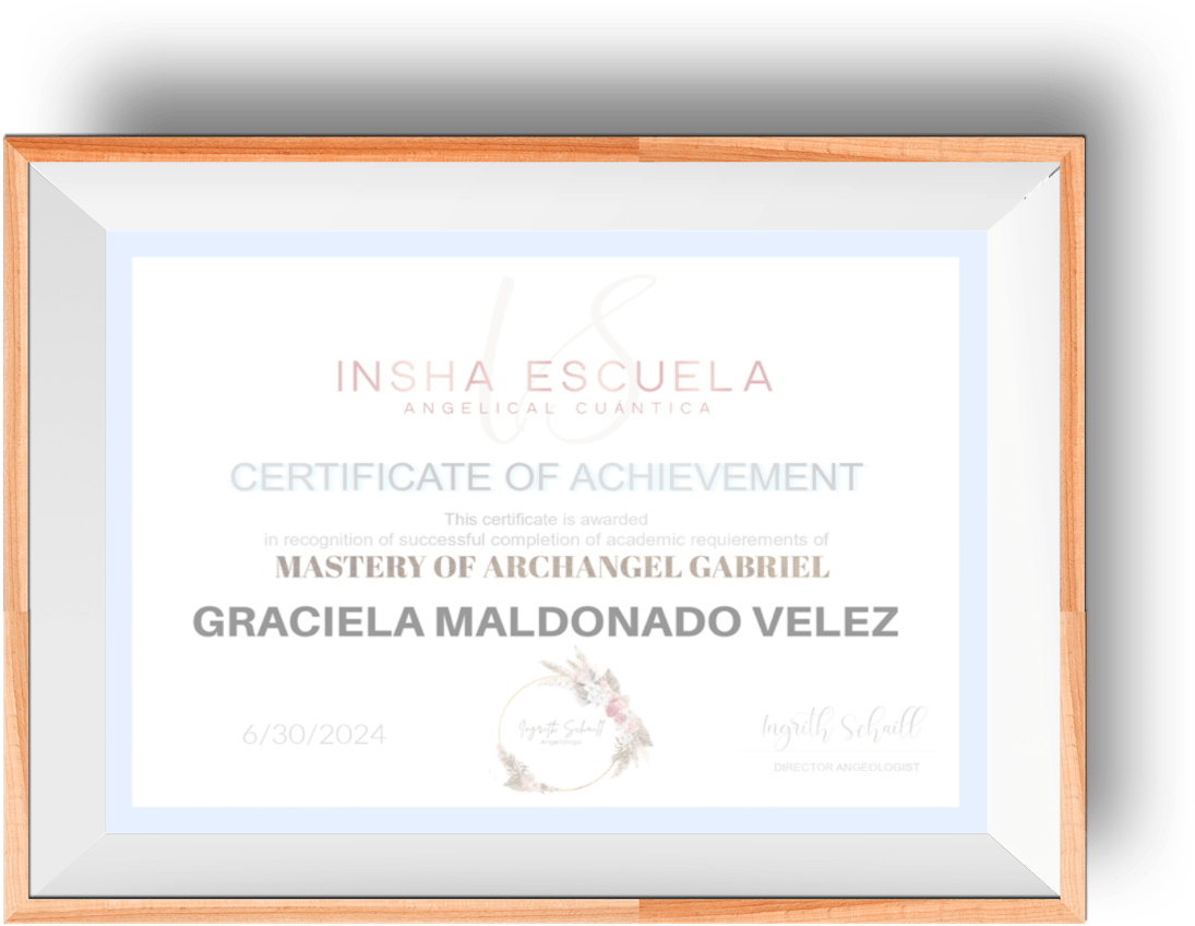 Al completar la maestría, recibirás un diploma especial que certifica tu formación como Angeloterapeuta Avanzada en la reconocida Escuela Angelical INSHA®.